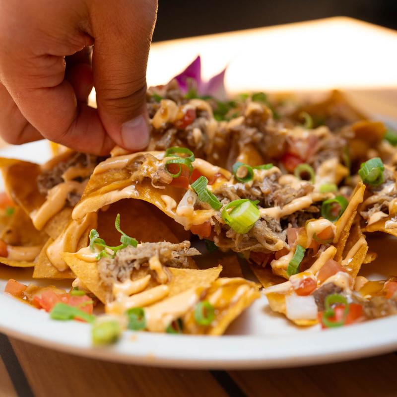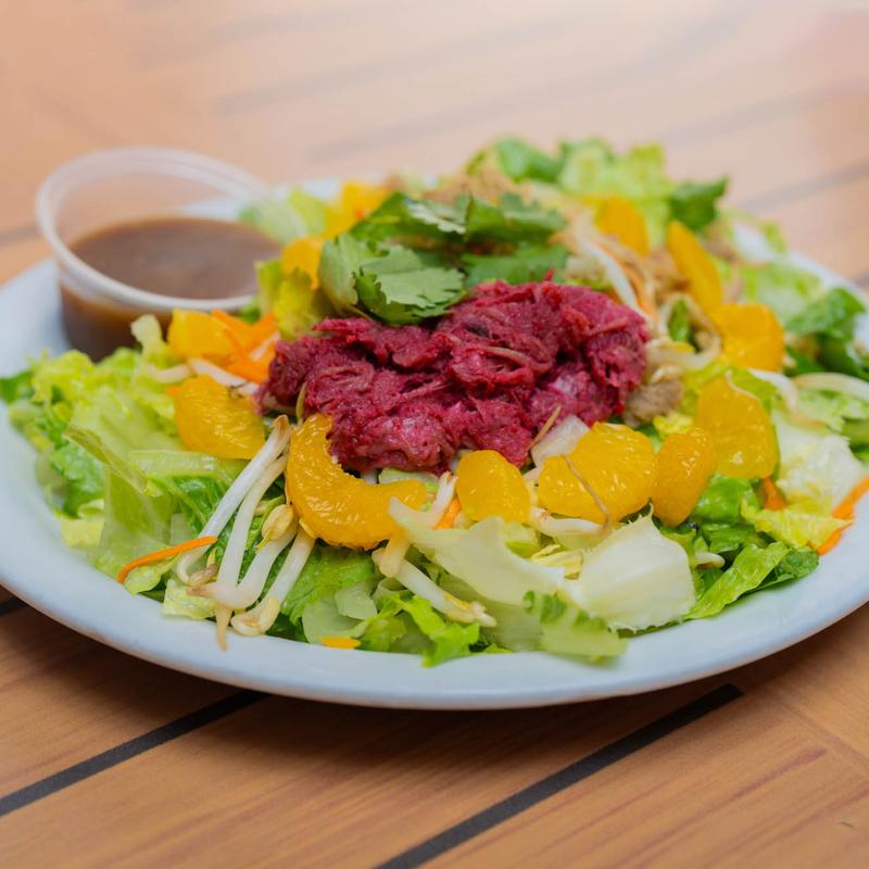 With 1 choice of White Rice, Brown Rice or French Fries [Upgrade to Garlic Parmesan-Truffle Fries $3 and 1 choice of Green Salad, or Potato-Mac Salad. Includes house pickle onion.