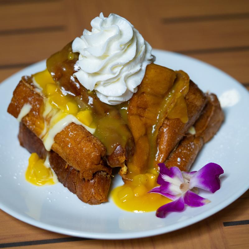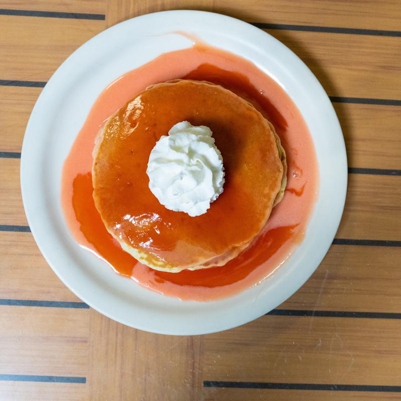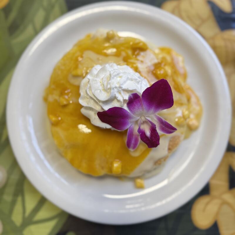 Our Signature Pancakes! Choose from a Short Stack (2) or Full Stack (4). Add A Topper! - Guava Chiffon topping, Liliko'i Chiffon, Pistachio cream, or sliced bananas +4.95