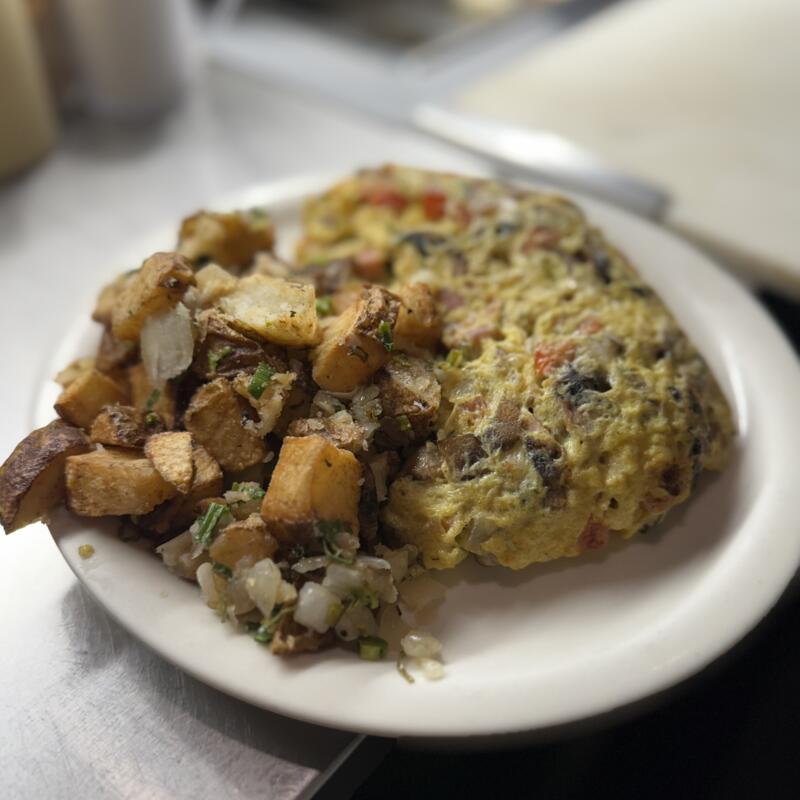 A fluffy, 3-Egg omelet with 1 choice from the following sides: white or brown rice, country tots, fresh pineapple, home fries or two buttermilk pancakes! Upgrade to Specialty pancakes for an additional $4.95